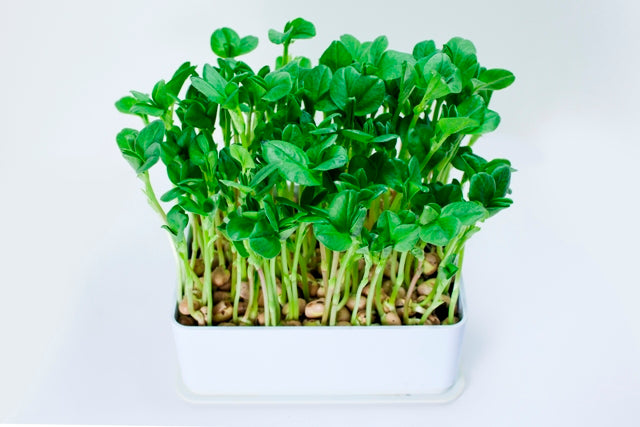 As microgreens grown in planting mix I have found these germinate faster and grow faster than white peas. They produce a really nice, mild large leafed green which is great on its own or added to salads. You can let them keep growing without them getting wilty if you like them large.