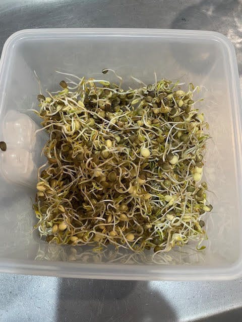 - Yield: 1/2 cup of dry seed yields 2.5 cups of sprouts