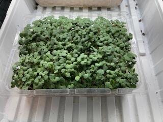 Instead of harvesting all at once, you can start to harvest microgreens as soon as the first two leaves are spread out. Take only what you need for your meal and allow the rest to keep growing or put the tray in the fridge loosely covered and a plastic bag or dome to harvest another day. Water as necessary.